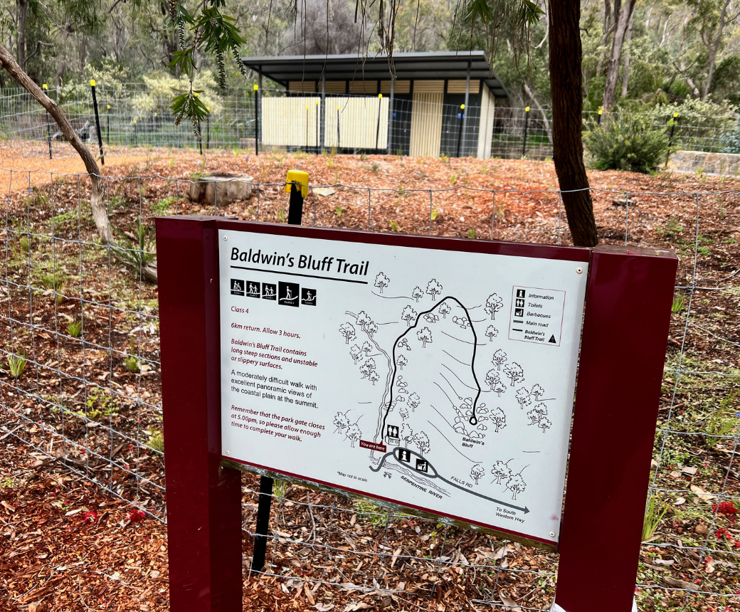 The trail starts on the south side of the Serpentine Falls carpark, next to the toilet block. The area has picnic and BBQ facilities. The Serpentine National Park opens every day between 8:30am and 5.00pm, with standard entry fees charged at the entrance of the carpark.