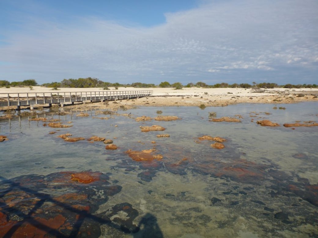 The trail's furtherest point is where people can get a glimpse of what life was like 3500 million years ago in the primeval seas. These stromatolites look like mushroom shaped rocks, but are infact colonies of cyanobacteria. Â Â