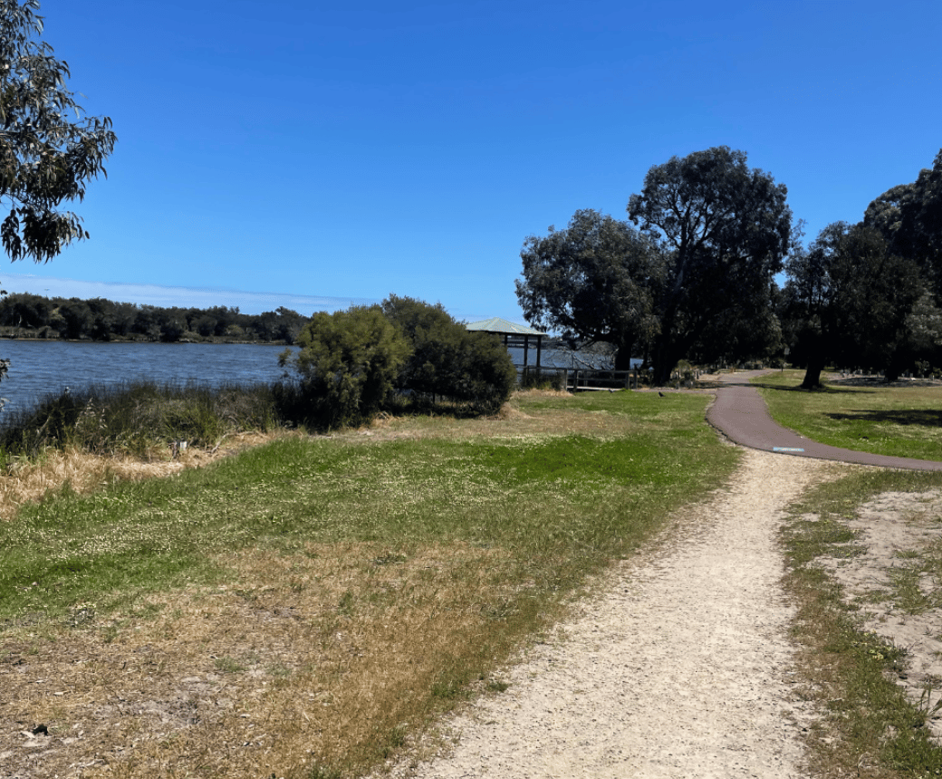 The Dandjoo Bilya (Twin Rivers) trail is a scenic trail that extends along the banks of the Collie River, offering ample views of the surrounding natural environment and showcasing the diverse flora and fauna native to the Australind/ Leschenault catchment. Keep an eye out for dolphins and the resident osprey, plus a wide variety of waterbirds.