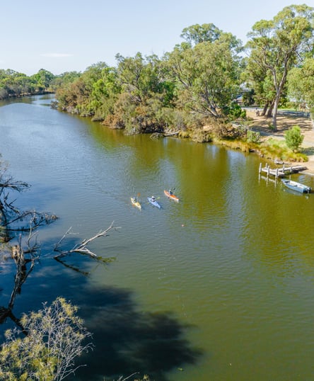 Paddling is a delight all year round on this tidal trail which starts in the Serpentine River and then travels upstream on the Murray River. Meander through the Murray River delta past bushland islands and holiday homes and watch for dolphins and the abundant bird life. The trail stays close to the inlet shore, and there are beach landings at the Peel Inlet end of the trail. You may have a short walk with your craft in the shallows. The Murray River is a mix of riverbank vegetation and unique waterside residences with boatsheds and jetties. Power boating is popular during holiday periods and warmer months on this river.