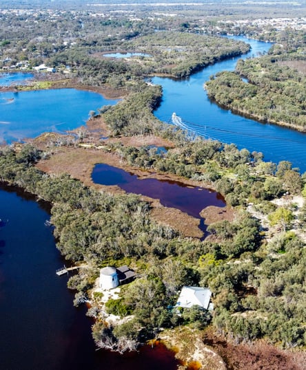 The trail passes Coopers Mill, which dates from 1843 and was the first flour mill in the region. Coopers Mill is located at the mouth of the river, on Cooleenup Island. The mill was constructed by Joseph Cooper using limestone believed to have been carried across the inlet by boat. Joseph rowed with the easterly winds in the morning and returned with the westerly winds in the afternoon. Joseph Cooper was a wheelwright and he died when he was crushed under his wagon during a trip to Fremantle in 1847, but his sons completed construction of the mill. When you explore and enjoy this trail, please respect private and public property.