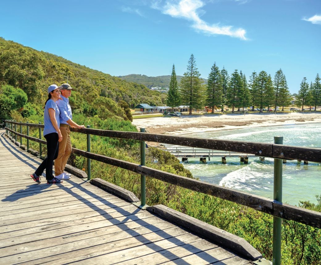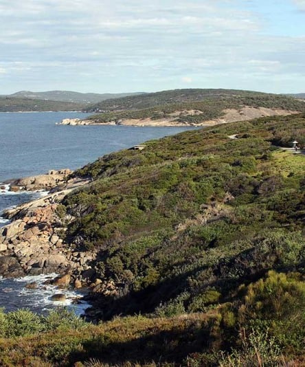 Learn moreA mixture of bitumen path and wooden boardwalk, the trail clings to the side of the hill and sweeps around with spectacular views of the bays. Commencing at the Ellen Cove trailhead, head up the boardwalk, keeping an eye out for the southern right or rare blue whales during whale season; a far cry from the days of whaling.