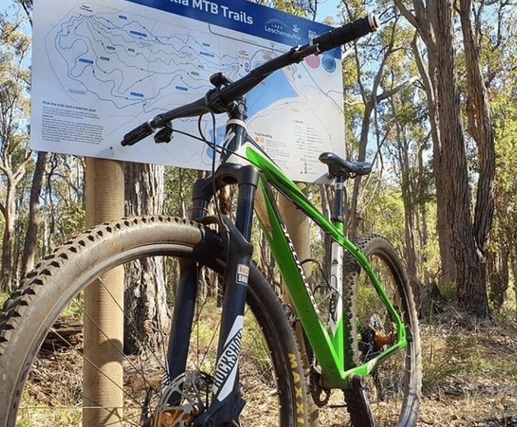 Dogs are prohibited at the Lake Leschenaultia MTB Trails.Â