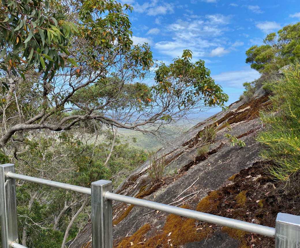Consider weather conditions before walking the Summit Trail. There are 300 steep steps and a ladder to climb so please consider your fitness level. The summit is a natural granite surface and can be slippery when wet.