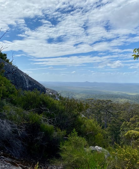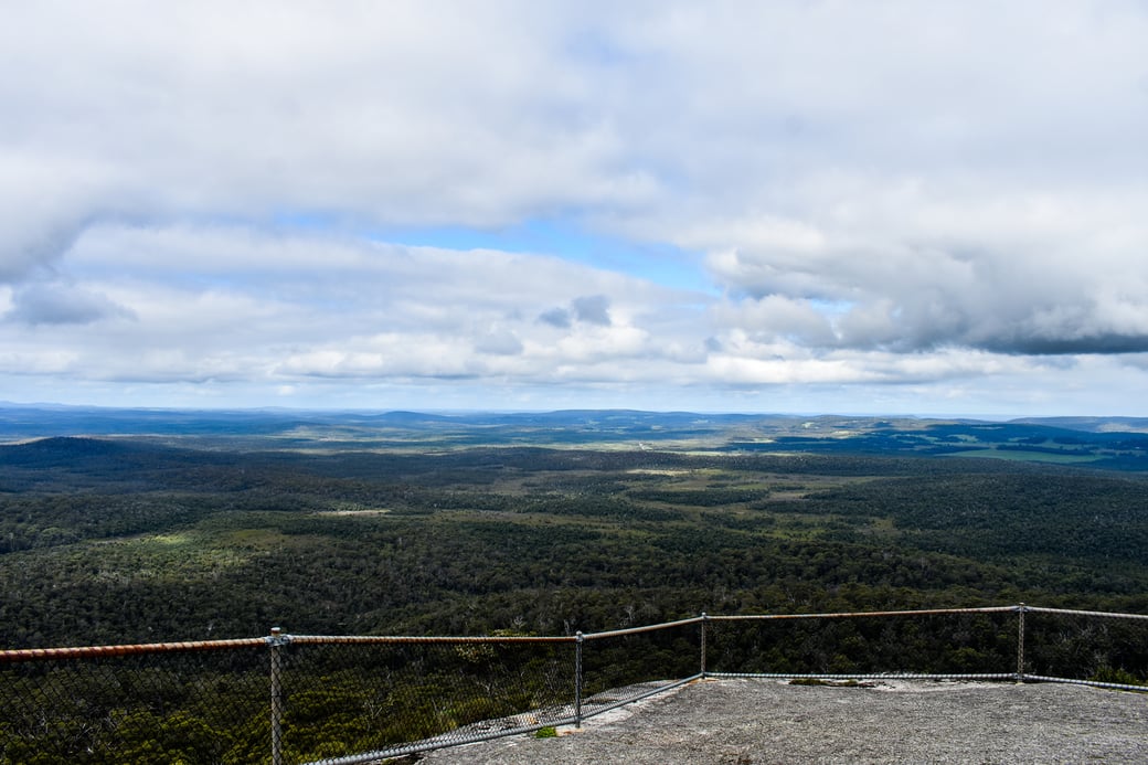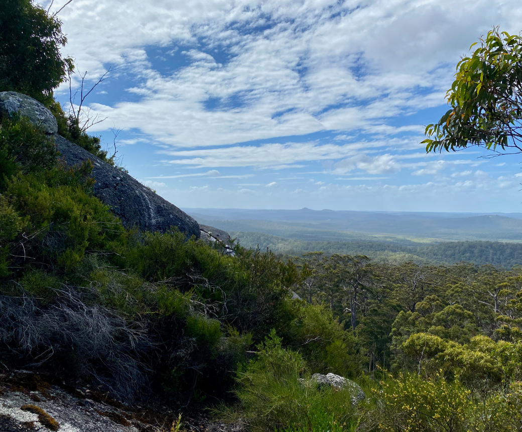On descent, take the trail to Soho Lookout and continue on the Caldyanup Trail which loops around the base of the rock (1.6km return-moderately difficult)Â to immerse yourself in one of the best granite and karri areas in the south west.