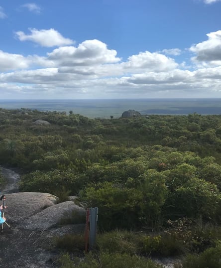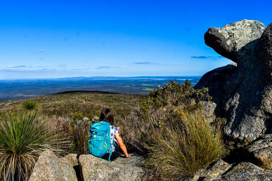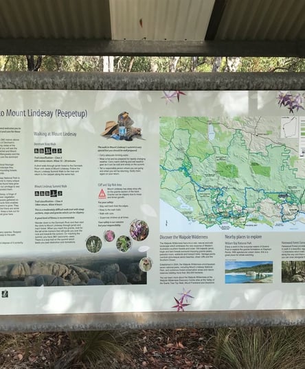 Learn moreFrom Denmark, a 23km scenic drive along Scotsdale and Mt Lindesay Roads takes you to the Mt Lindesay trailhead and picnic area. The walk trail leads you down to the Denmark River and across a bridge. After this, the track is steep for 500 metres. It is then an easy grade walk for about 2.5km, passing through jarrah and mallee scrub before arriving at a granite outcrop. Tall white trail markers guide you over the rocks. Once at the summit, enjoy the panoramic views over farmland, the coast and the Walpole Wilderness.