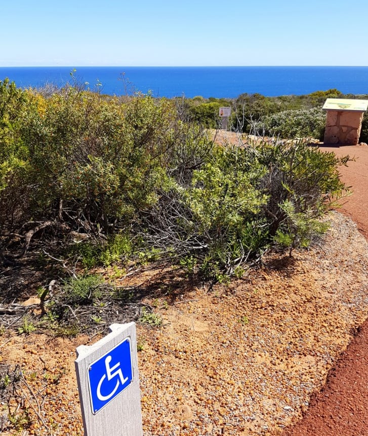 All abilities access, flat, even, hardened surface with no steps or steep sections. Suitable for unassisted wheelchair users and prams. Clear directional signage. No bushwalking experience required.