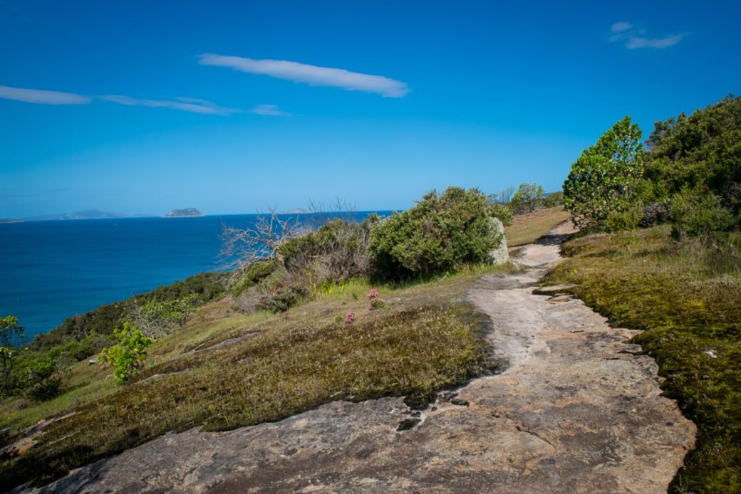 Starting along the beautiful cliffs above Whalers Cove, the walk takes you through wildflower filled woodlands and on towards the loop section that lets you walk along the pristine Brambles Beach. The climb up to Point Possession provides some of the best views of King George Sound before you head down to the picture perfect Barker Bay Beach. Be sure to bring your swimming gear in summer as there is a good chance you will have the beach all to yourself.Â