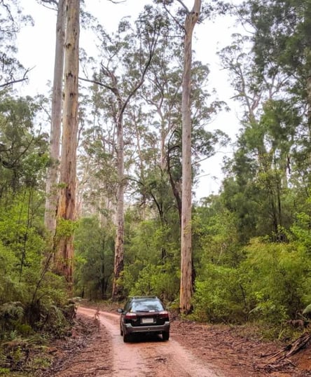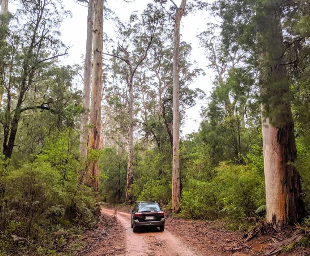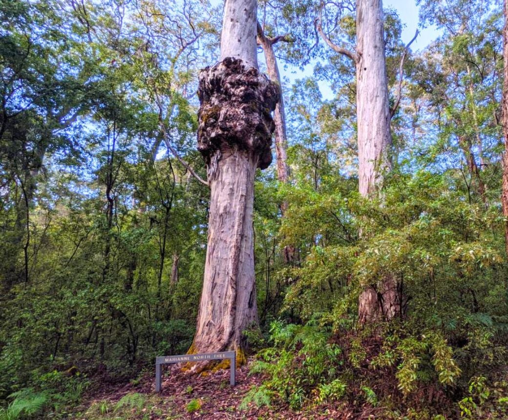 Turning back along Old Vasse Road, the trail then passes a huge karri painted by Marianne North on a visit from England in 1880. Radio 100FM provides more information along the route. The Warren National Park offers some of the best virgin karri forest in the south west. The Warren River Loop Walk follows a similar route.