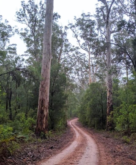 This one-way gravel road loops in an anticlockwise direction from Old Vasse Road down to the Warren River at Heartbreak Crossing. The track was originally built to clear a path for firefighters. It then follows the river.