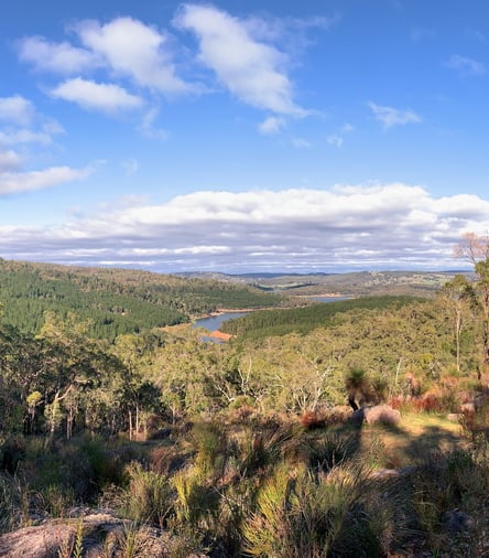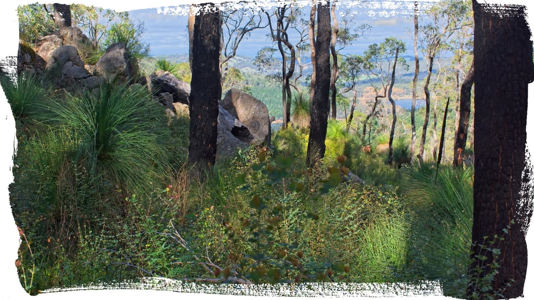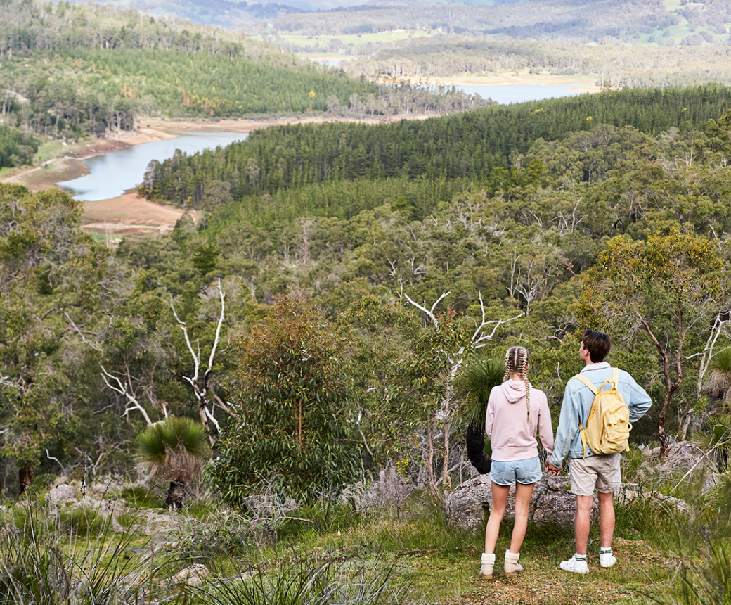 Only 90 minutes south of Perth, on the outskirts of the town of Harvey in Australia's South West, this delightful 1.4 km short trail has stunning views over the backwaters of the Harvey Dam to the East and all the way to the coast on the western side. The trail passes several large granite outcrops and is ablaze with wildflowers in Spring.