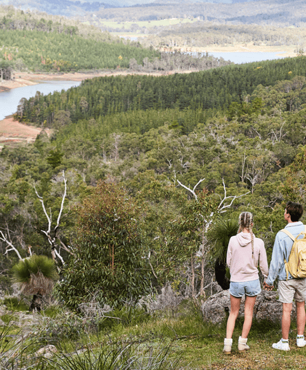 Cabins and camping set in the state forest overlooking Logue Brook Dam.